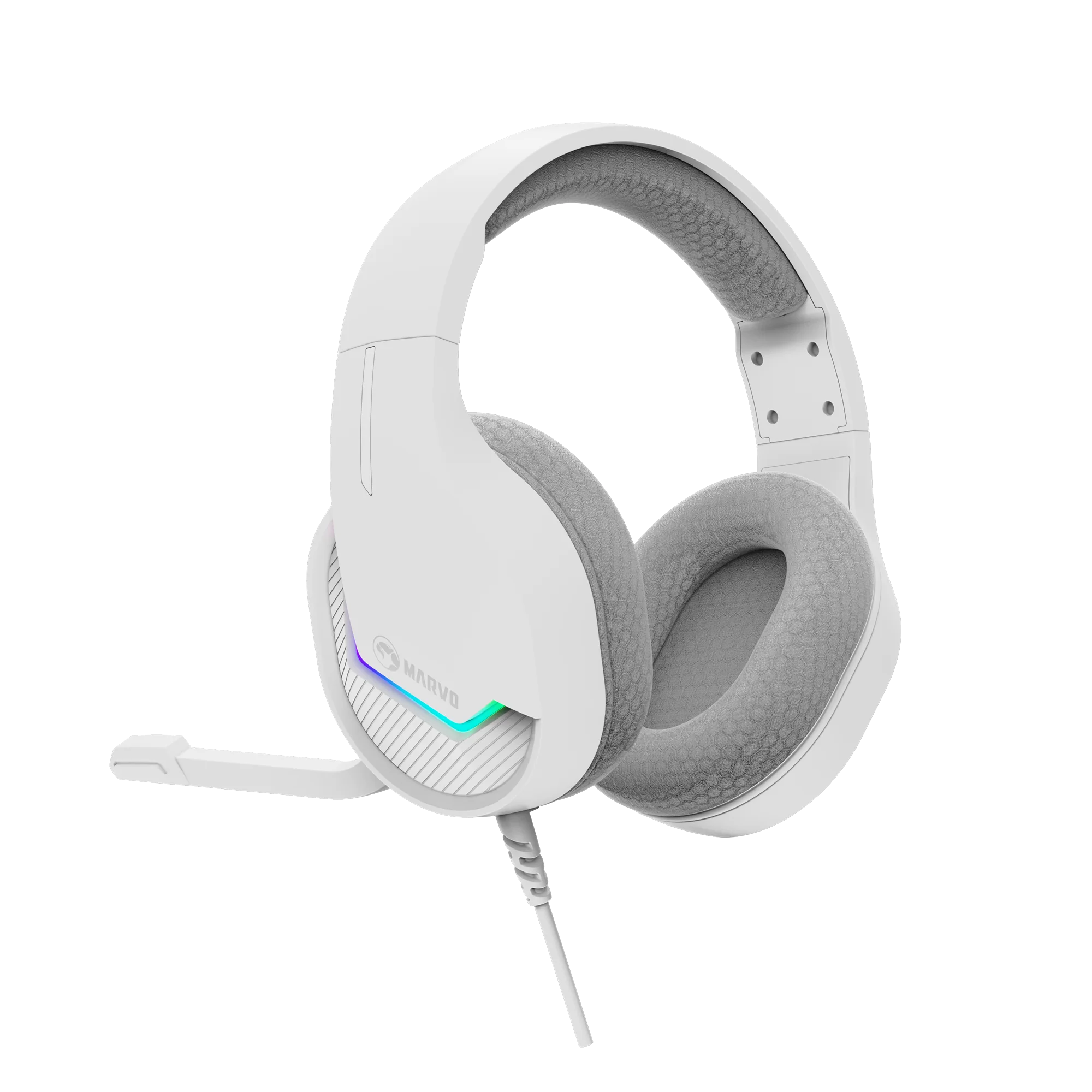 AUDIFONOS MARVO/ H8618/ WH MIC/ OMNIDIRECCIONAL-RGB-CABLE TRENZADO USB 2.0 2M/ WHITE