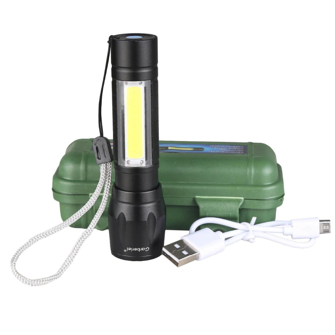 + El lado de la linterna está diseñado con una luz led para diferentes usos.